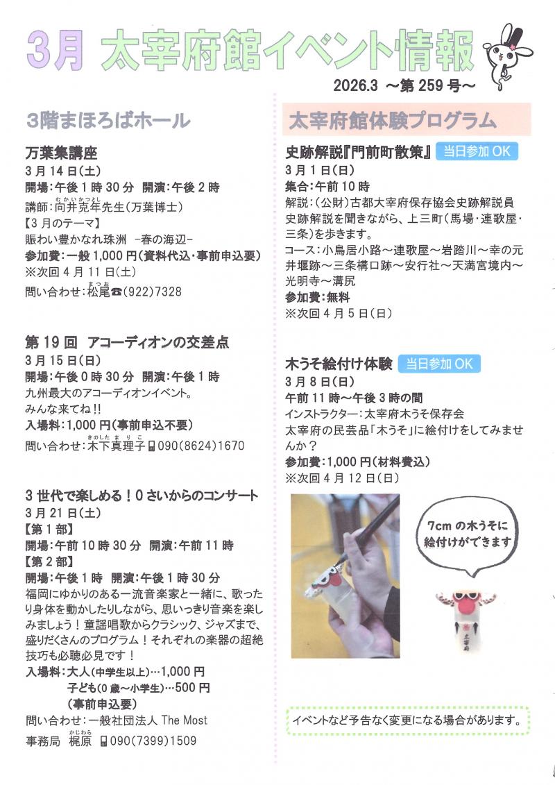 令和8年3月 太宰府館イベント情報