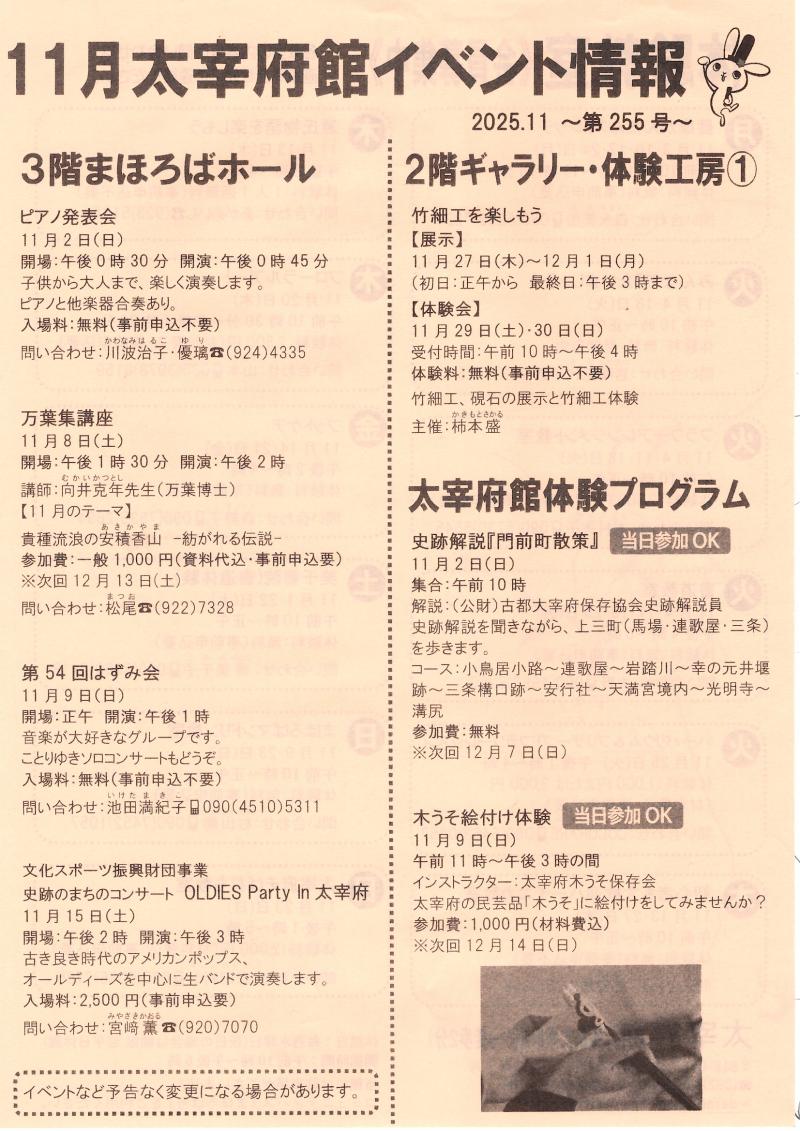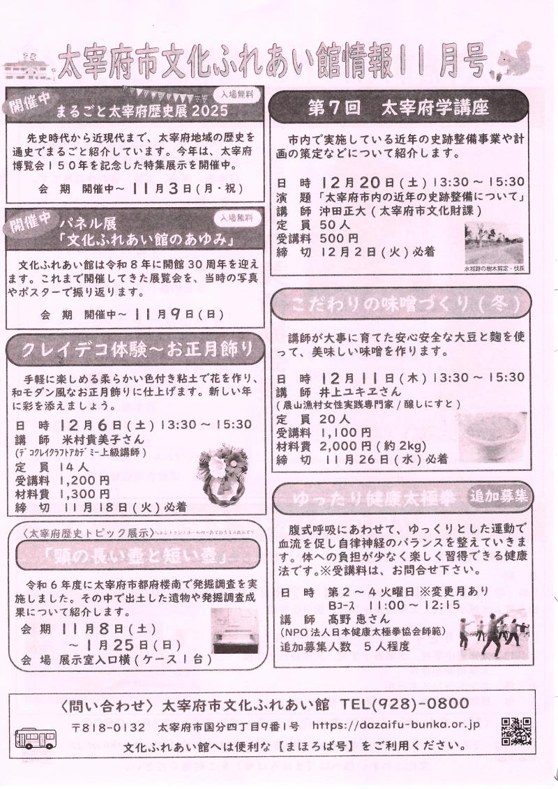 まるごと太宰府歴史展 2025 開催中~11月3日【 展示の概要 】令和の都・だざいふは、日本でも指折りの豊かな文化遺産に恵まれた土地です。「まるごと太宰府歴史展」は、太宰府地域の歴史を、先史時代から古代・中世・近世・近現代まで、通史でまるごと紹介する展覧会です。【 今回のみどころ! 】...