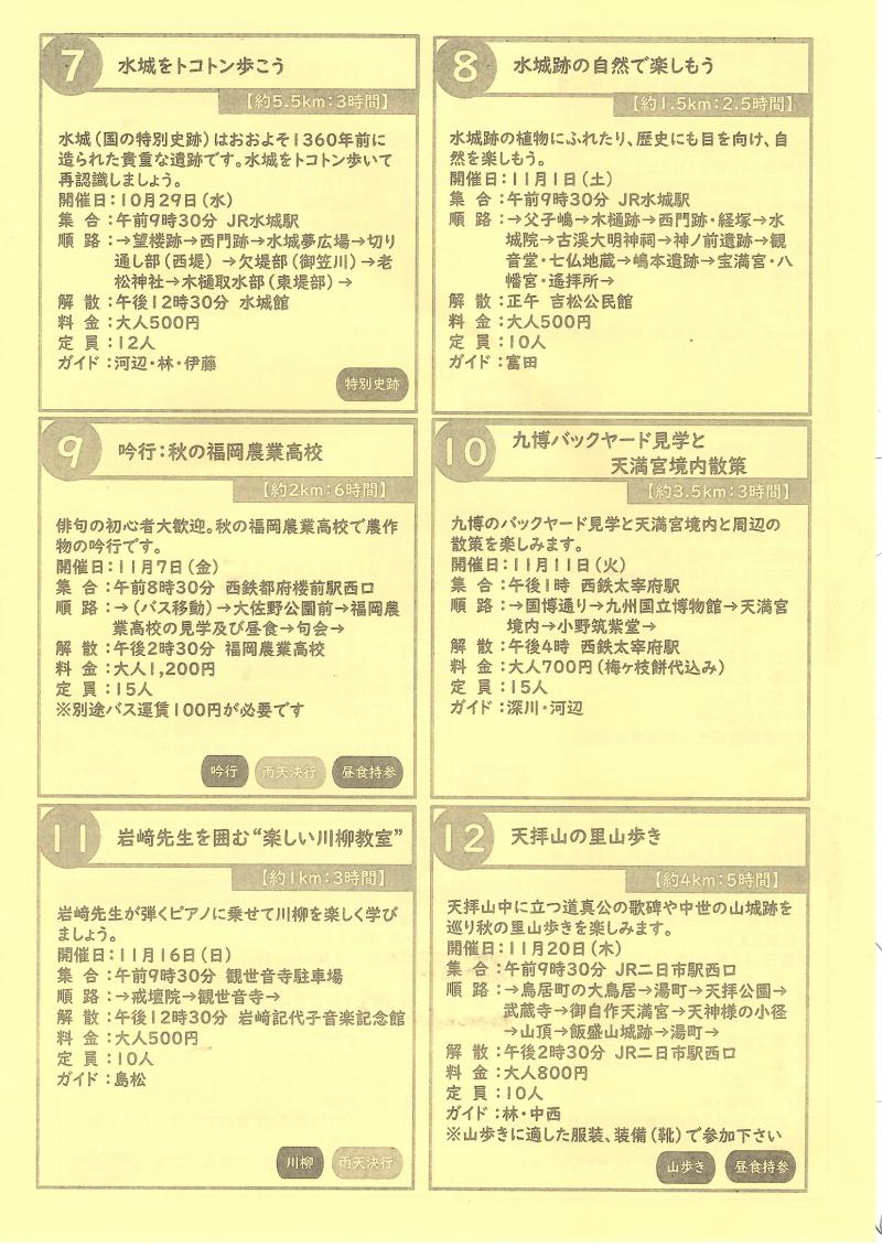 NPO法人歩かんね太宰府のボランティアガイドが、自身で内容を企画した秋コースの開催が決定しました。太宰府には多くの人には知られていないけれども、実はおもしろい見どころたくさんの場所があります。地元のことをよく知っているボランティアガイドと一緒なら、一味違った体験ができるかも。どなたでもお気軽に...