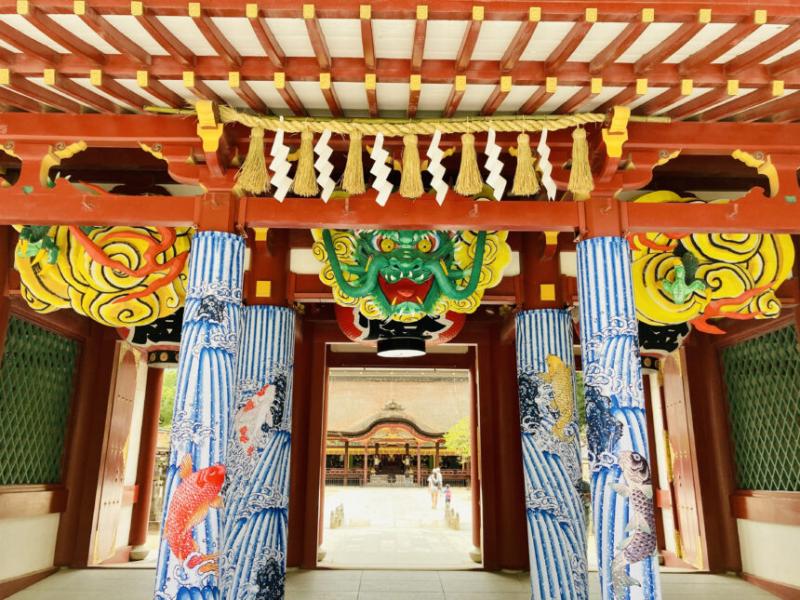 大祭期間中、登龍門の伝説にならい「飛龍天神ねぶた」が楼門に設けられます。乗り越えなければならない難関を見事突破できますよう、それぞれのお願いごとを込めてお通りになりご参拝ください。大祭期間中に受験合格祈願をお申し込みになられた方には、期間限定のお札・お守り・絵馬・掛け襟が授与されます。